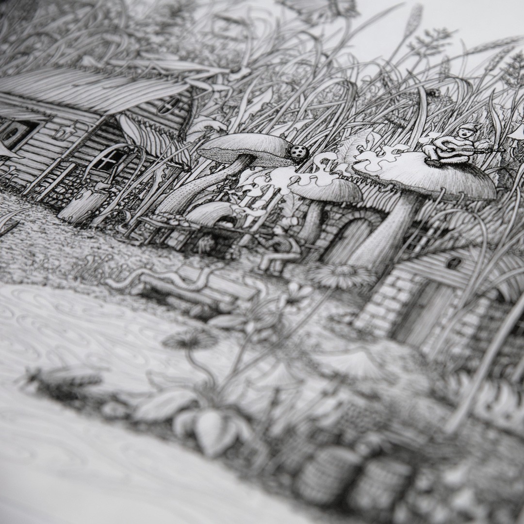 Über ein Jahr hinweg ist diese 1,08 Meter breite Zeichnung mit Bleistift und Finelinern entstanden. Sie vereint zwei zentrale Interessen: Kunst und Natur. Inspiriert von Beobachtungen aus der heimischen Umgebung zeigt sie eine kleine Welt, in der die Wiesenzwerge im Einklang mit ihrer natürlichen Umwelt leben. Ausgestellt wird dieses Werk nicht nur als Bild, sondern als Ausdruck dieser Verbindung. Vielleicht beginnt der Wert eines Gegenstands dort, wo Leidenschaft, Zeit und persönliche Begeisterung sichtbar werden und andere dazu einladen, genauer hinzusehen.